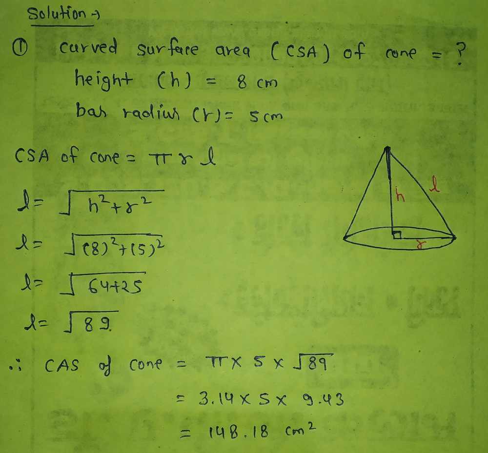 The Base Radius Of A Right Circular Cone Is 6 Cm And Its Perpendicular Height Youtube from i.ytimg.com How do you find the slant height of a cone? Calculations are based on algebraic manipulation of these standard formulas. 269 π = π r 2, which is 844.66 = 3.14 r 2 which would mean the radius is 9.9. Lateral surface area of a cone (la) = πrs = πr√ (r 2 + h 2) total surface area of a cone (ta) = la + ba = πrs + πr 2 = πr (s + r) = πr (r + √ (r 2 + h 2 )) volume of a cone (v) = (1/3)πr 2 h. I tried putting 269 π (the number of the total surface area) in the formula: R = radius h = height s = slant height v = volume l = lateral surface area b = base surface area a = total surface area π = pi = 3.1415926535898 √ = square root It wants me to find the base radius of the cone, the formula for that is a b = π r 2. The units are in place to give an indication of the order of the results such as ft, ft2 or ft3.